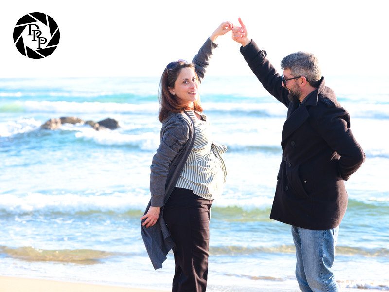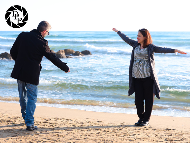 La mattina sulla spiaggia ho lasciato ai futuri genitori un po’ di libertà di manovra e assecondato di buon grado le loro idee e ho proposto le mie. È importante che i soggetti siano contenti delle immagini, quindi il fotografo deve sapere cosa desiderano, d’altro canto, noi siamo professionisti che conoscono tecniche, trucchi e altri servizi simili e possiamo arricchire il lavoro con la nostra esperienza. Anche solo il banale suggerimento di scattare qualche foto di profilo, per mettere in risalto il pancione, può essere utile.